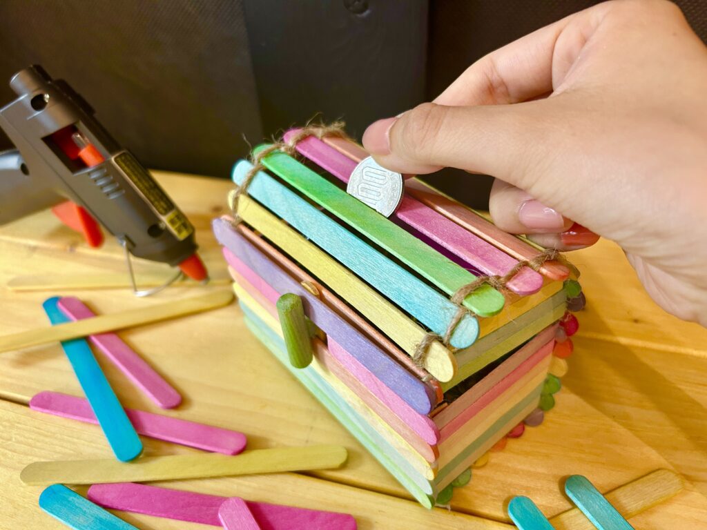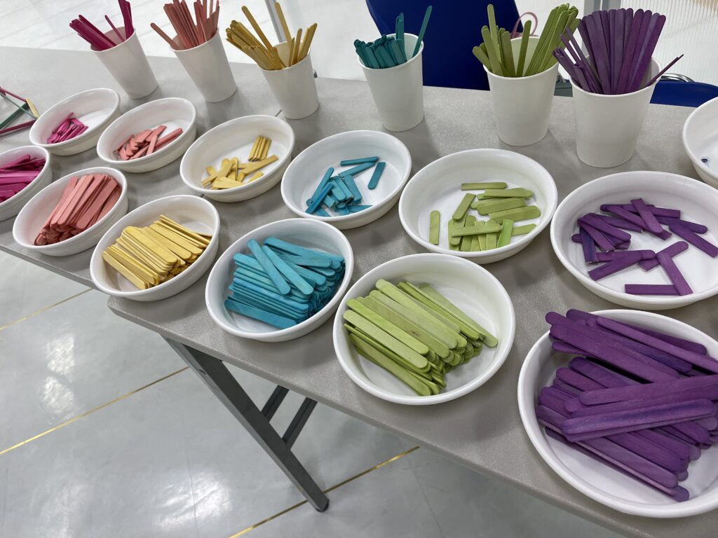 - カラフルに染められたアイスの棒から、好きな色を選んで自分だけの組み合わせを作ります。